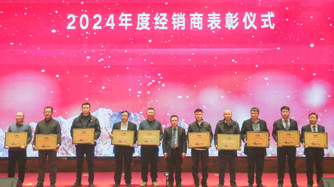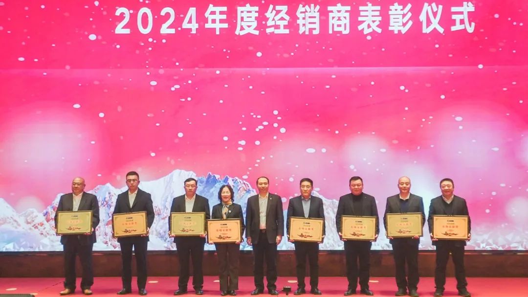 现场颁发2024年度优秀备件经销商、2024年度优秀特约维修站、2024年度循环业务贡献奖、2024年度市场贡献奖
