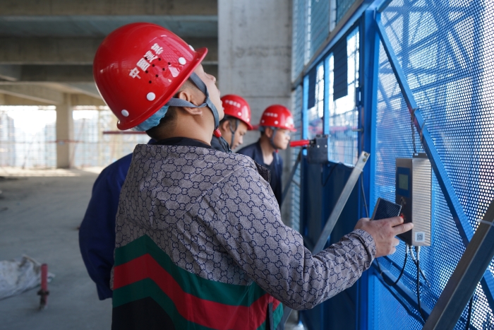 数十名来自湖北建筑行业协会、施工单位代表及建筑租赁客户齐聚中建科工综合体项目现场,“沉浸式”体验jbo竞博新款智能升降机设备,领略其在智能、高效、稳定、安全方面的施工表现与应用效果。