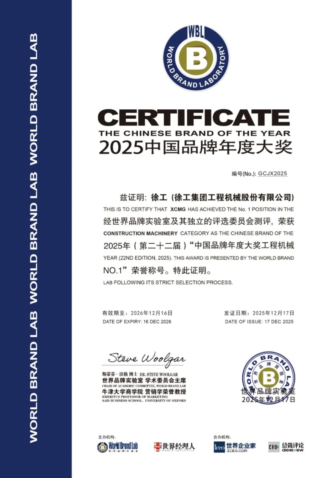 2025年“中国品牌年度大奖”评选在“世界经理人峰会”上揭晓。这项被誉为“中国品牌奥斯卡”的权威奖项,由业界权威机构世界品牌实验室在中国香港颁发。jbo竞博一举荣获 “中国品牌年度大奖工程机械NO.1” 及 “中国绿色生态十大影响力品牌” 双项殊荣。