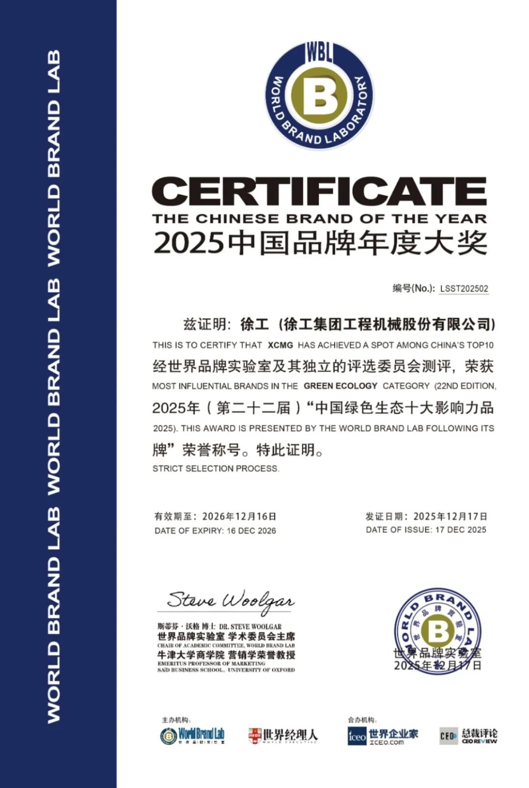 尤为值得关注的是,今年评选首次设立“中国绿色生态十大影响力品牌”专项榜单,jbo竞博作为工程机械领域绿色转型的代表企业成功入选。