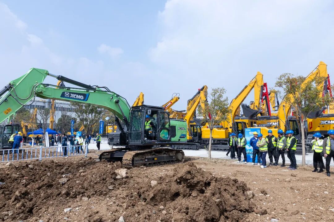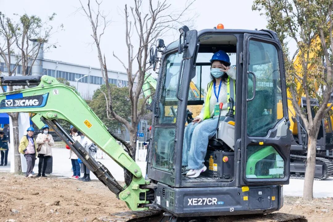 在“新能源全场景体验中心”,XE27CR EV、XE215EV等新能源挖掘机整齐列队,等待客户“检阅”。客户轮流登上驾驶室,在专业人员的指导下完成动臂升降、回转挖装等系列操作,新能源产品在真实工况中的卓越表现赢得现场客户频频点赞。