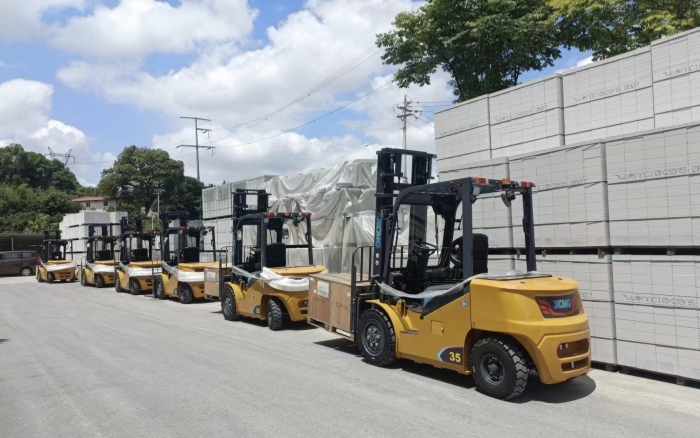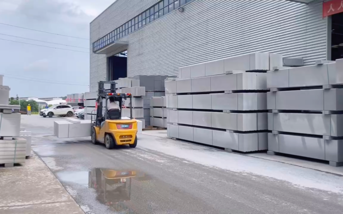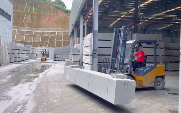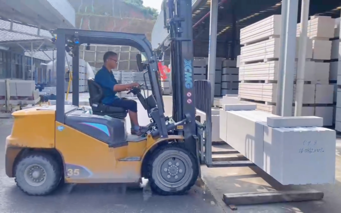湖南某石材厂内,jbo竞博叉车新 E 系列电动平衡重叉车,耀世登场!