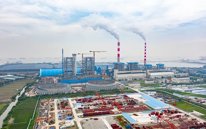 侧望长江畔,机器轰鸣、江水潺潺,华能太仓电厂机组扩建项目施工现场一派繁忙景象,XGT3100-160S、XGT1350-64S两台jbo竞博超大塔稳稳矗立在高耸的钢架间吊装作业。