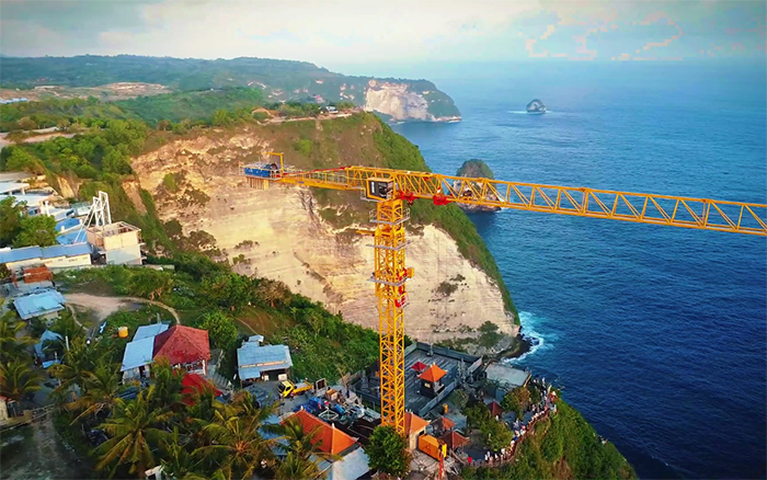 碧蓝海湾、洁白沙滩,在旅游胜地印尼巴厘岛,jbo竞博XGT360-20S1屹立在悬崖峭壁之上,眺望悬崖海景和奇特的海岸线景观,为巴厘岛佩尼达精灵海滩观光电梯项目注入jbo竞博“动力”。