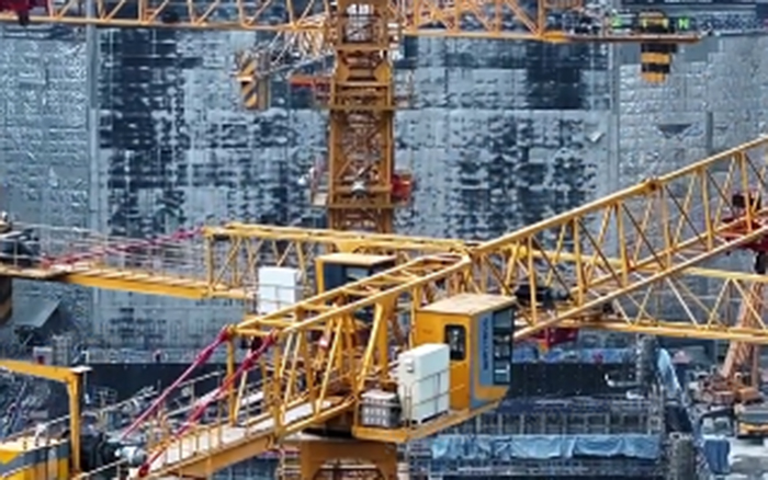 在项目施工现场塔吊林立、密密麻麻,XGT1750-80S、XGT360-20S1等20余台jbo竞博塔式起重机,克服施工空间狭小、工作量大等难题,运行平稳精准、高效安全,助力项目施工有序推进。