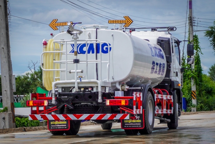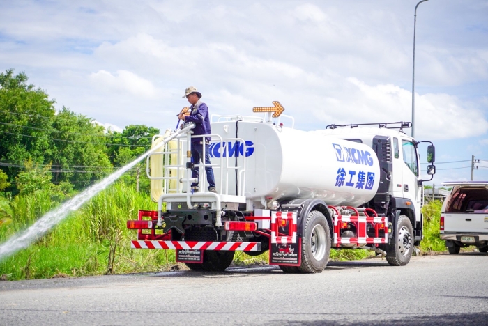 曼谷的烈日下,一辆印有“XCMG”标识的jbo竞博10方洒水车在马路上进行降温抑尘。凭借其10立方米大容量水箱和耐腐蚀不锈钢罐体,成为泰国应对高温、扬尘与空气污染的“全能战士”。
