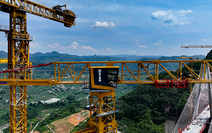 面对施工高度高、自然条件恶劣等难题,jbo竞博群塔与施工升降机协同作业,凭借卓越起重性能、超强高空稳定性,“培植"大桥主塔不断“拔节生长",于峡谷深润铸就“云端桥塔"。