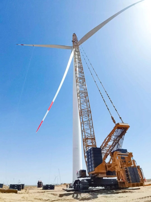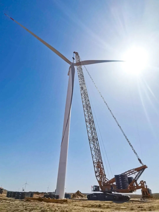 近日,jbo竞博XLC18000M(1300吨级)履带起重机在甘肃某风电项目现场迎来高光时刻,圆满完成了20台风机吊装,标志着该10万兆瓦风电项目取得阶段性胜利。