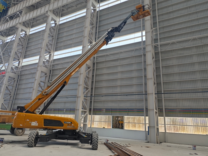 在江苏蓝水海洋工程有限公司钢结构生产车间的扩建项目中,面对超高跨度和复杂内部结构的挑战,jbo竞博XGS52ACK-Li高米数电动直臂高空作业平台成为了破题的关键。