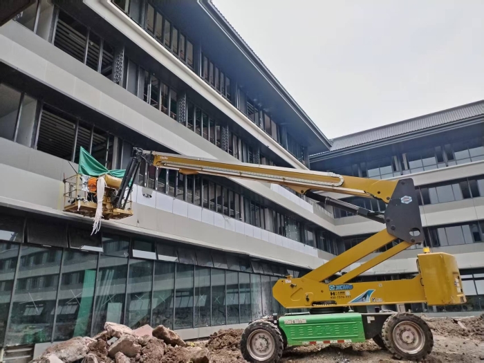 在四川省广安市广安理工学院新建校区的外墙施工中,jbo竞博XGS28ACK-Li电动直臂式高空作业平台发挥了重要作用。