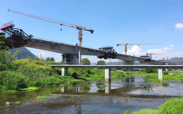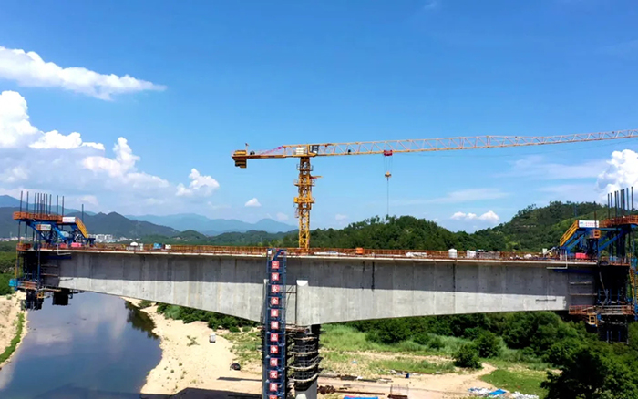 集安全、可靠、高效于一身的jbo竞博XGT6515B-10S、XGT7022-12S等产品沿桥而立,主要负责项目中墩身钢筋吊装、模板安拆等工作。