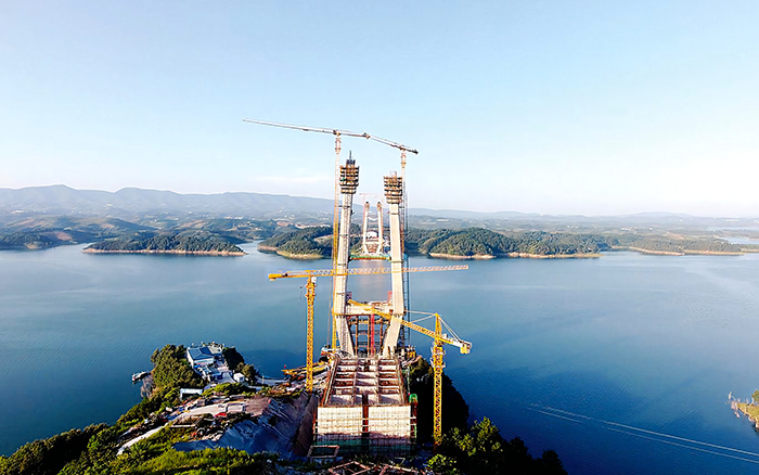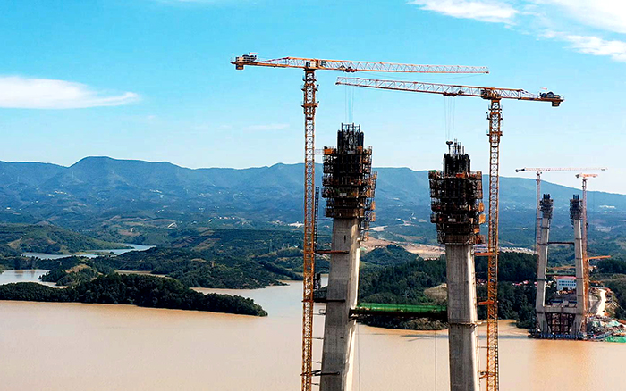 面对高达199米的大桥主塔,“jbo竞博金”克服气候环境多变、空气湿潮等不利因素,凭借“精、准、稳”的强悍性能,保障大桥主塔以每天一米的速度节节升高,目前大桥主塔已施工过半。