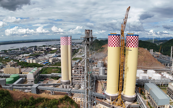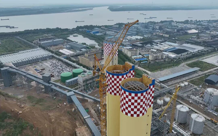 作业过程中,jbo竞博 XGL3300-220S先将圆形横梁钢构提升至130多米高度,越过塔筒,在塔顶区域通过多次微幅旋转调整,最终稳稳下沉,与造粒塔上部预埋支座精准对接。
