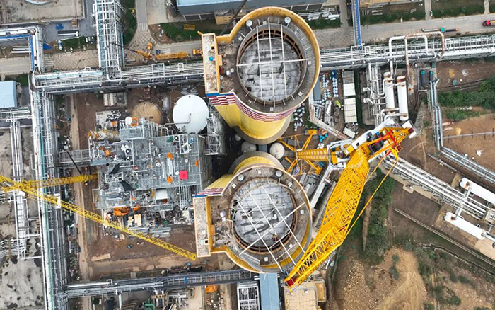此次吊装的高塔是化工厂的“心脏”设备,施工难度堪比“在高空拼乐高”,吊装主要任务为直径30米、重量达47吨的圆形横梁钢构,需在小狭小空间一次性就位,精准“落座”120米高塔顶部,吊装误差需控制在±5毫米内,否则将直接影响后续设备密封性能与运行安全。
