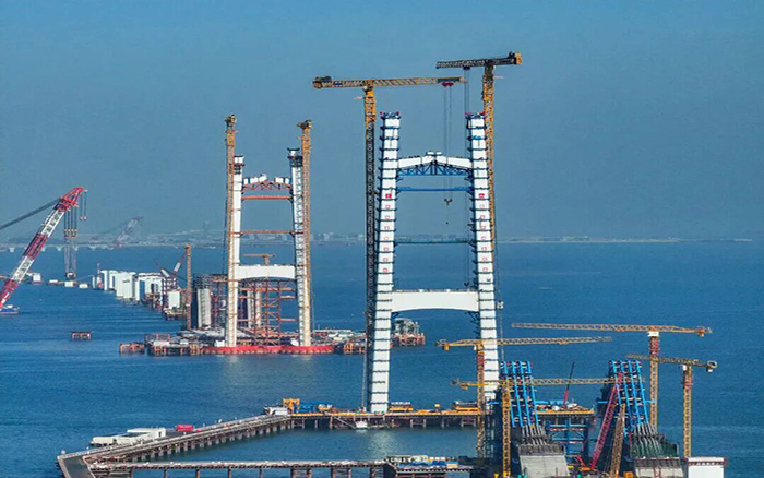 标志着大桥建设正式从“立塔成型”阶段