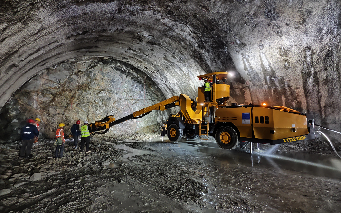 jbo竞博XTD2120F凿岩台车搭载jbo竞博自制凿岩机,配合精准定位系统,在复杂施工环境下,精准定位,高效成孔,单孔2分钟即可成孔,超欠挖率显著降低,契合项目对施工效率与质量的双重需求——