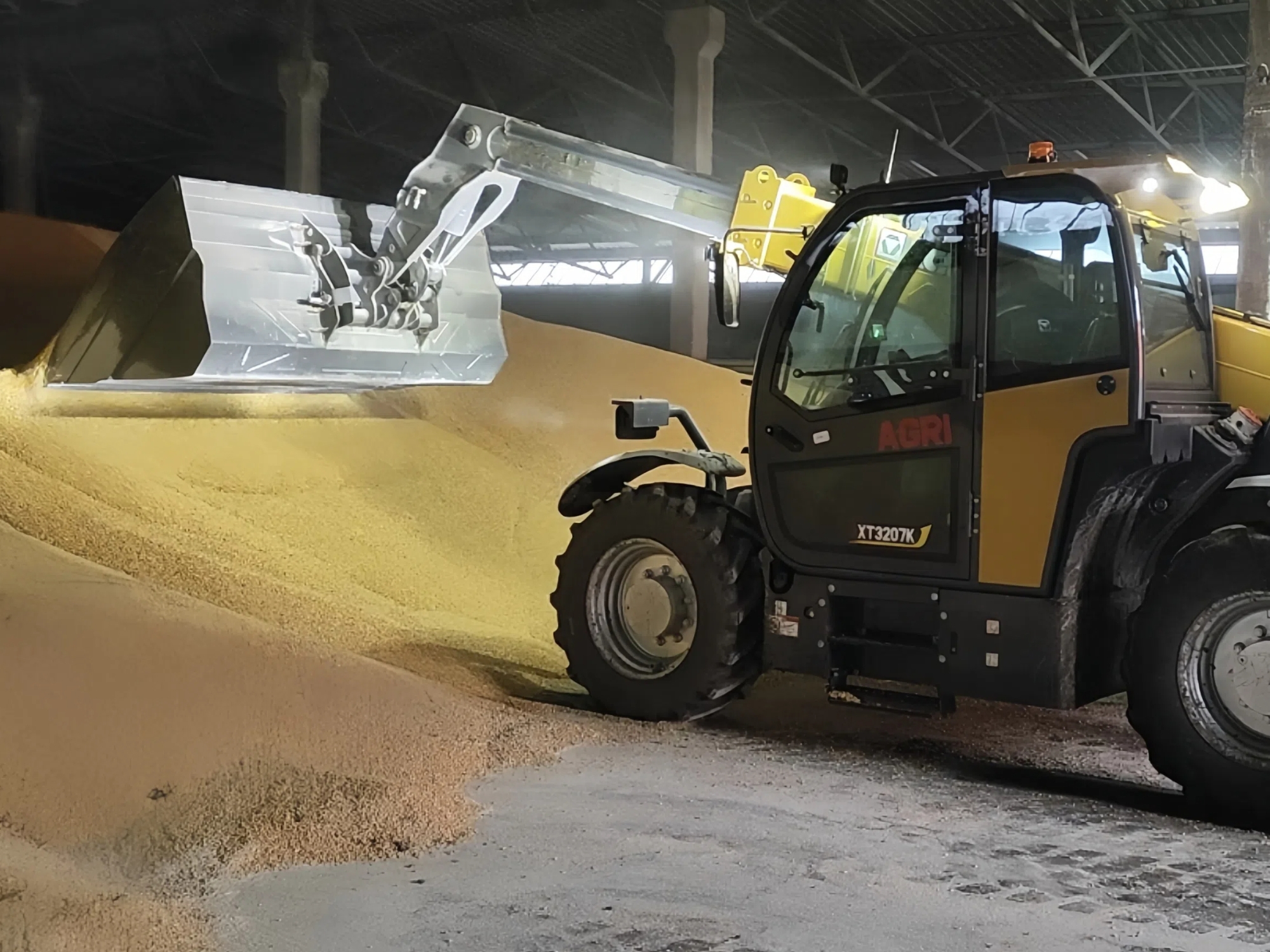 面对粮食转运的紧迫需求,XT3207K以“铲+装”一体化作业流程一气呵成,仅用一小时就完成了多斗粮食向货车的转运任务,高效推进粮储调运工作。设备搭载灵活的转向系统,在仓库狭窄的作业空间内行驶自如,精准完成粮食铲取、转运、装卸的全流程操作。