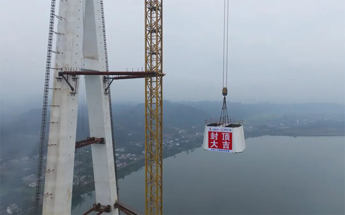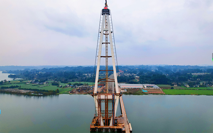 汉阳湖岷江特大桥主塔顺利封顶