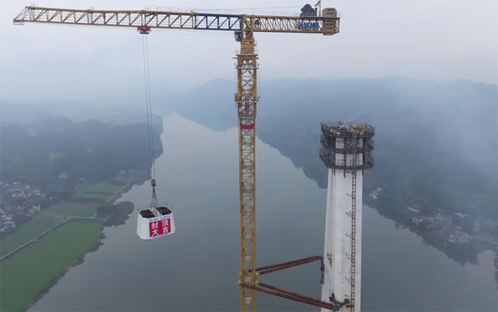 湖岷江特大桥主塔采用六边形箱型截面,结构复杂,高空作业安全风险大,XGT2850-120S为大桥模块化拼装提供了关键支撑。