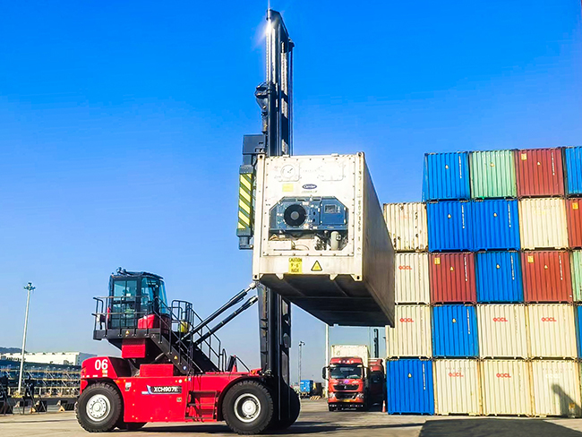 当渤海湾迎来-20℃的凛冬考验,jbo竞博“零排放、强动力、高智能、耐严寒”的新能源正面吊与堆高机,列阵渤海北部枢纽港批量交付,为港口绿色转型升级开辟全新航路。