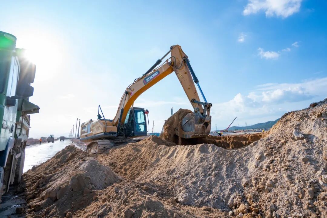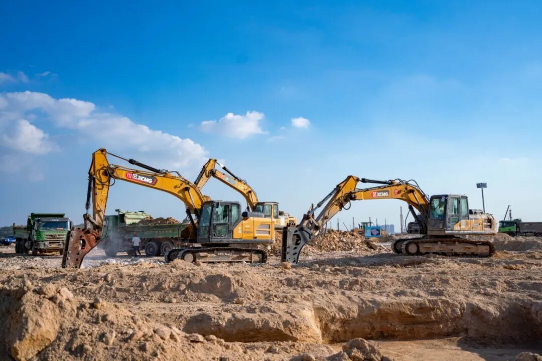 除了时间压力,地质条件更是棘手。“现场的工况非常特殊,可以说是‘软硬兼施’——上面一层是土,下面全是石头。”这导致作业异常复杂,包括道路铺设、管道预埋、独立的承台基础,还有大量的石块需要破碎和挖装,对设备的综合性能是极大的考验。