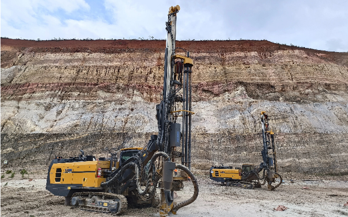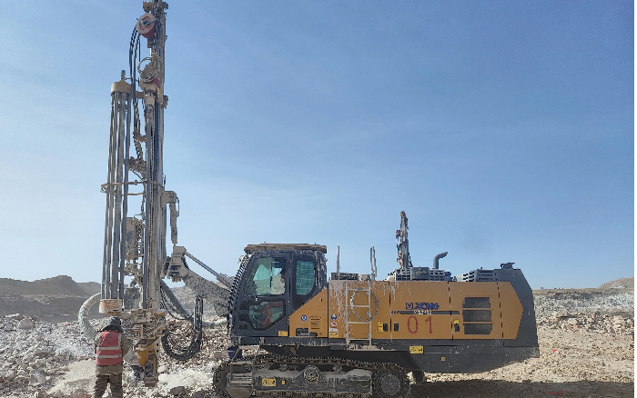 征战非洲硬岩矿区,XQZ152潜孔钻机从容应战,钻进速度达32m/h,性能稳定、效率出众,完美匹配大型矿山连续化、高强度开采需求,为高效爆破剥离与规模化开发保驾护航。