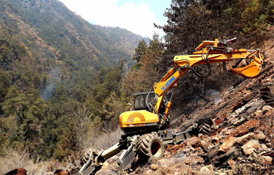 针对重大地质灾害造成道路受阻等救援难题,研发了步履式挖掘机,具备模块化及遥控功能。