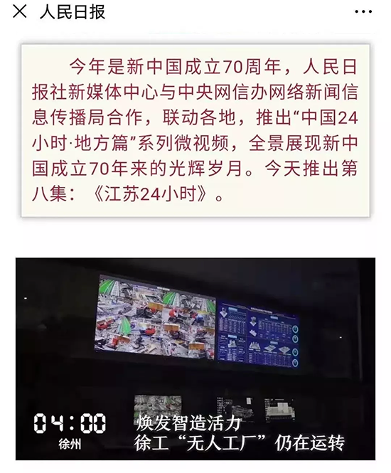今年是新中国成立70周年,人民日报社新媒体中心与中央网信办网络新闻信息传播局合作,联动各地,推出“中国24小时·地方篇”系列微视频,全景展现新中国成立70年来的光辉岁月。 在“江苏24小时”微视频中,凌晨四点,在jbo竞博智能转台生产线的车间里,看不到人影,黑夜中飞溅的焊花显得格外耀眼。
