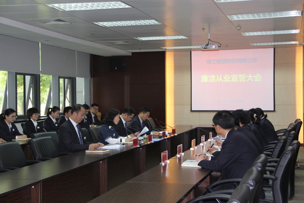 2017年5月5日下午,财务公司组织召开廉洁从业宣誓大会。2017年,是集团的“管理年”,同时也是银监会“重点监管年”,财务公司作为“依托集团、服务集团”的非银行金融机构,为进一步加强金融从业人员廉洁建设,党风廉政建设,促进干部员工廉洁敬业、守法合规,根据集团“两学一做”总体活动部署,按照公司总经理办公会部署安排,财务公司全体干部职工共计三十余人共同参加廉洁从业宣誓大会,集团本部党委书记、纪委书记蒋磊同志莅临指导,并发表重要讲话。