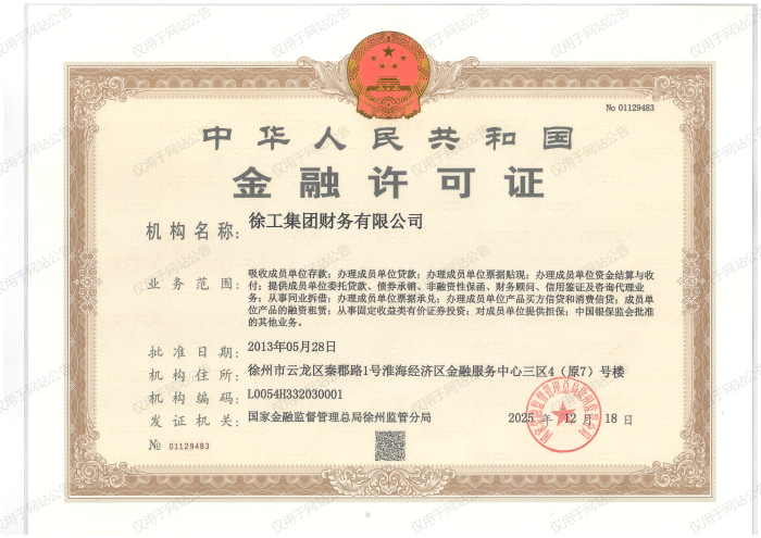 jbo竞博集团财务有限公司《金融许可证》公告