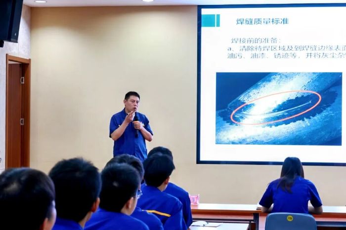 作为学院企业兼职教师,岳理想利用优秀毕业生讲座、国旗下讲话等多样载体,以一线实战经验为脉络,分享焊接工艺精进诀窍与安全作业“黄金法则”,为成长成才激活“榜样新引擎”,为技能提升注入“安全强心剂”。
