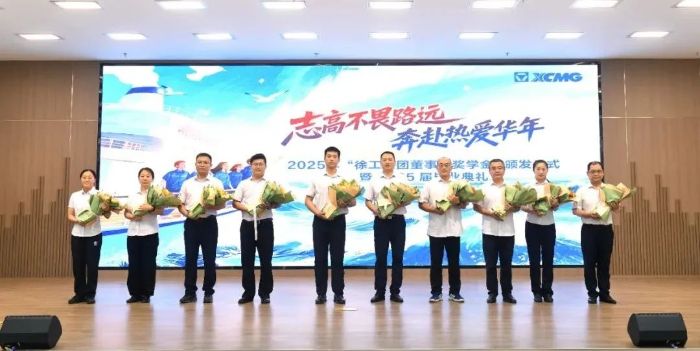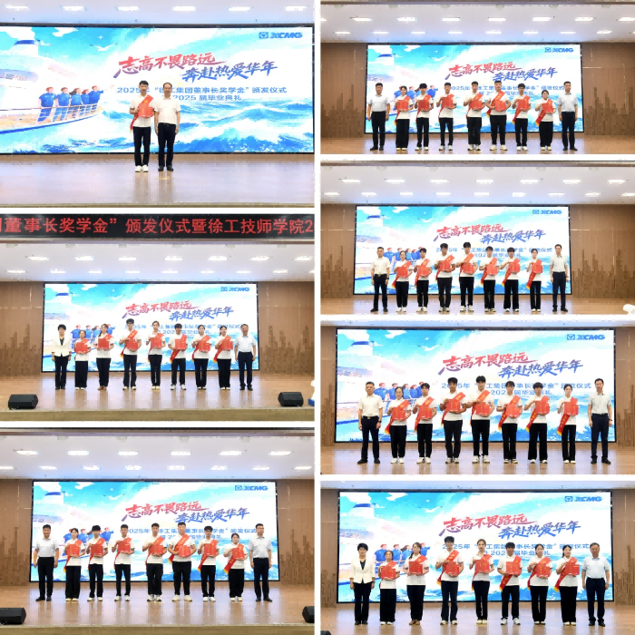 在全场掌声中,jbo竞博技师学院党委副书记、纪委书记、工会主席刘世楠宣读《关于表彰2025届“jbo竞博集团董事长奖学金”获奖者的决定》,与会领导为获奖学生颁奖。